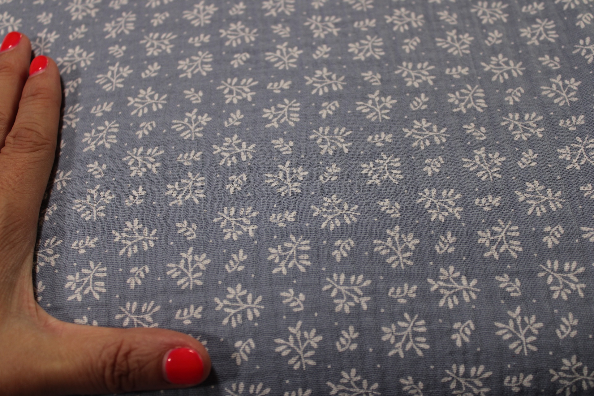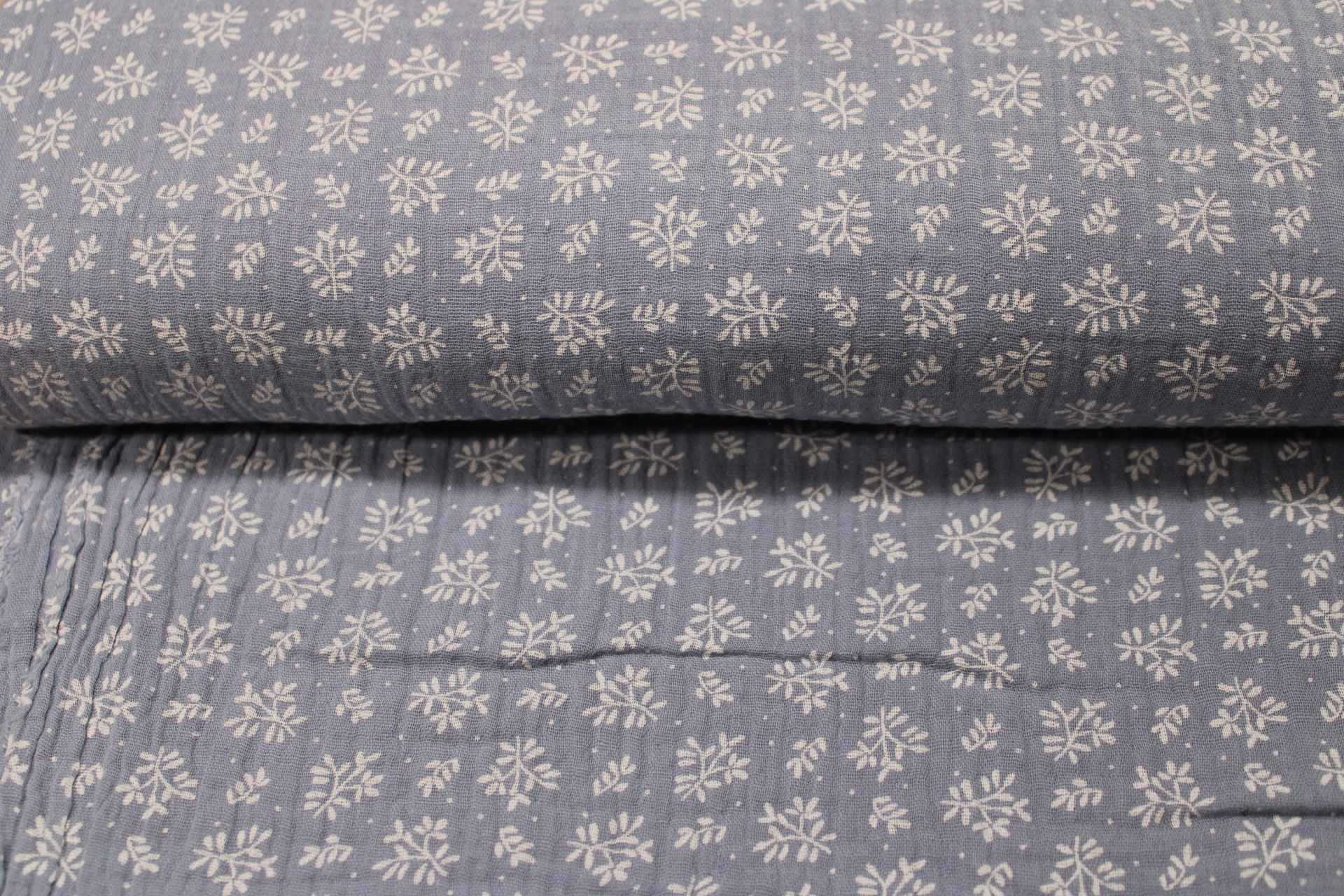 Musselina azul com ramagem branca