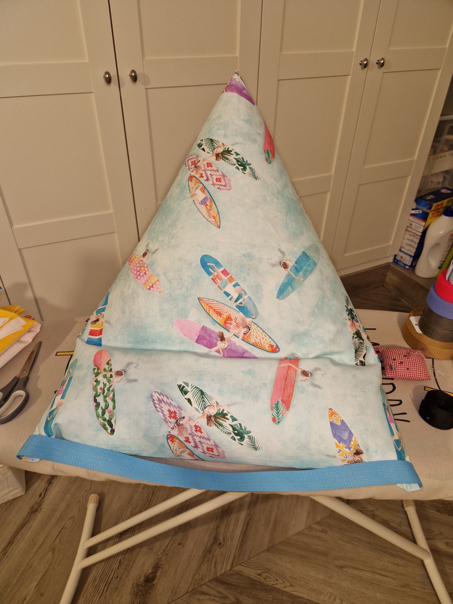 Puffs/almofadas de praia em tecido resinado.